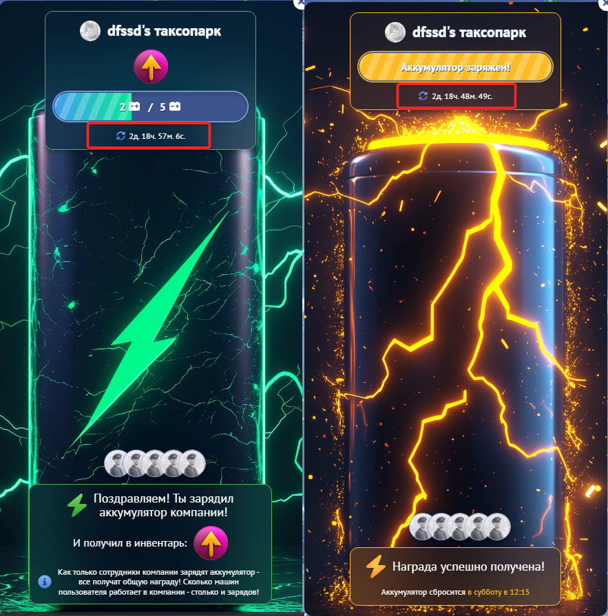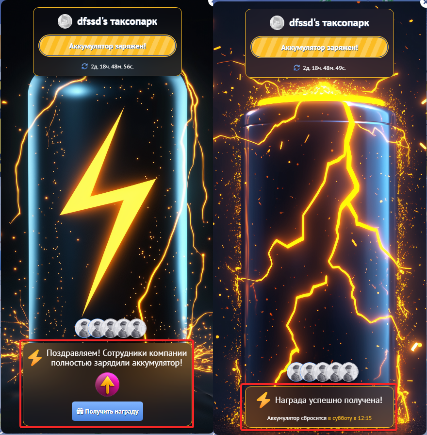 Как только аккумулятор полностью заряжен, вся компания моментально получает общий бонус.