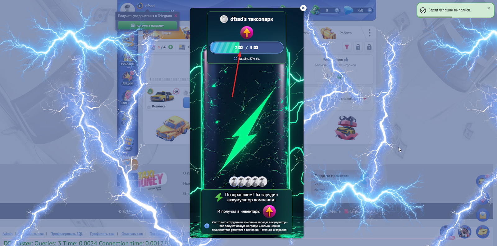 После того как Вы нажмете “Зарядить” у Вас заполниться прогресс бар, а также будет показано количество зарядов