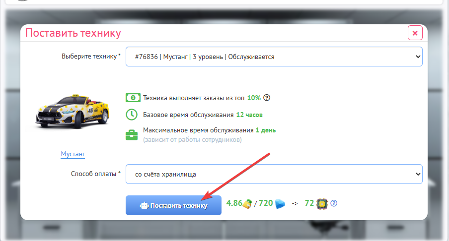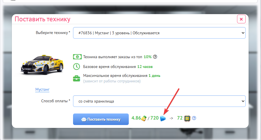 Вне зависимости от счета оплаты Вы будете получать прибыль исходя из того, трудоустроена Ваша техника или нет. Например, если такси трудоустроено, то оно будет выполнять Рабочие/Элитные заказы/Поиски , привозя прибыль на счет компании. Если такси не трудоустроено, то она будет выполнять Халтурные/Конкурсные заказы/Поиски, привозя прибыль на Ваш “Счет вывода”